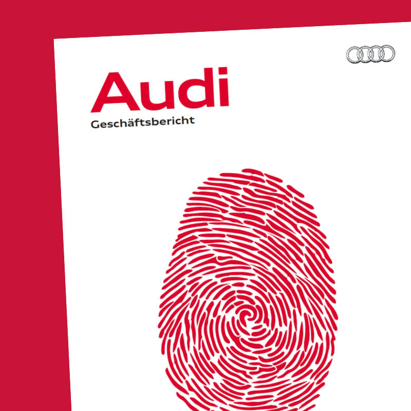 Art Direktion und Gestaltung des preisgekrönten Audi-Geschäftsbericht mit individuell gelasertem Fingerprint